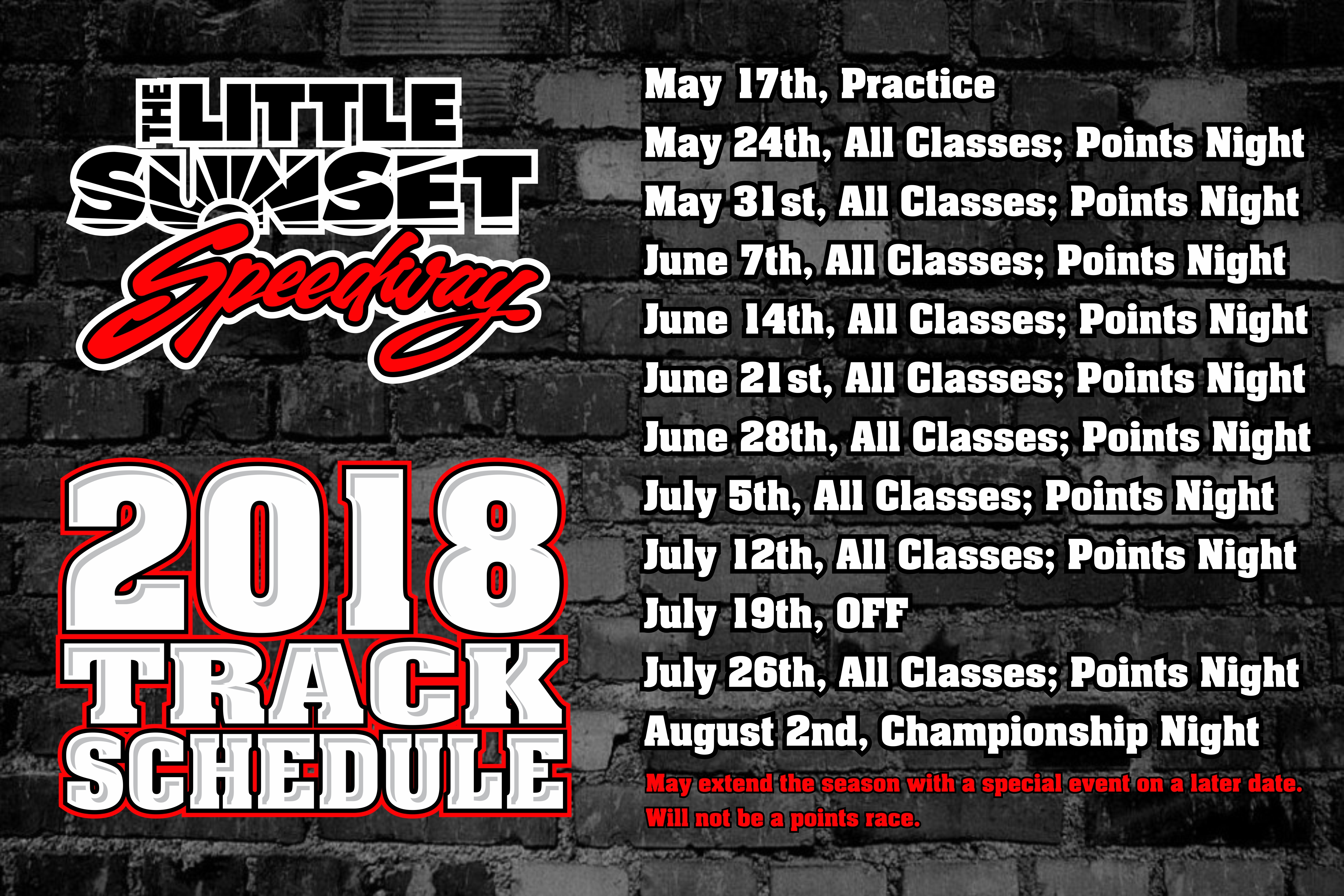 2018 Track Schedule